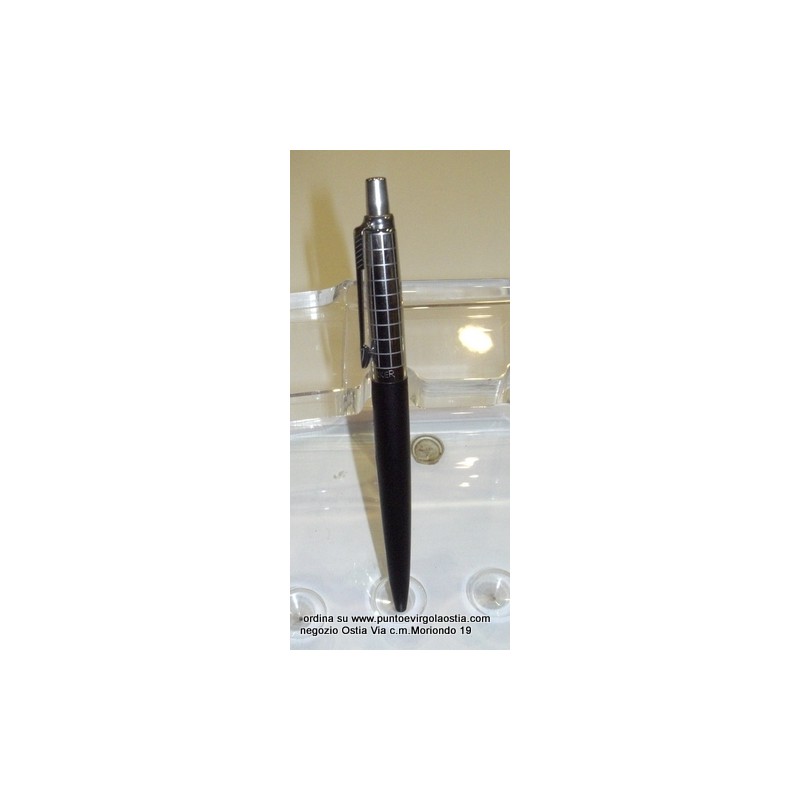 Parker Jotter premium - Penna sfera - fusto nero -cappuccio metallo satinato quadrettato
