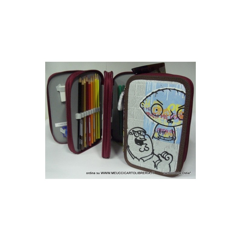 Descrizione Astuccio Triplo contenente 47pz. 1 Righello 1 Squadretta 1 1 Temperino 1 Forbice 1 Gomma 1 Matita ; 3 Penne Tratto 1 Rossa 1 blu 1 nera 1 Pennarello Fluorescente 18 Pennarelli punta fine Turbocolor Giotto 18 Matite colorate Fila